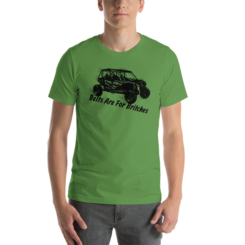 This t-shirt is everything you've dreamed of and more. It feels soft and lightweight, with the right amount of stretch. It's comfortable and flattering for both men and women. What's more is that you can proudly show everyone how proud you are to own a Honda Talon by letting everyone know that "Belts Are For Britches"!!!